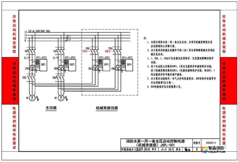 本图集适用于民用与工业建筑内3/N/PE AC220V/380V 50Hz系统中消防水泵机械应急启动的控制。
