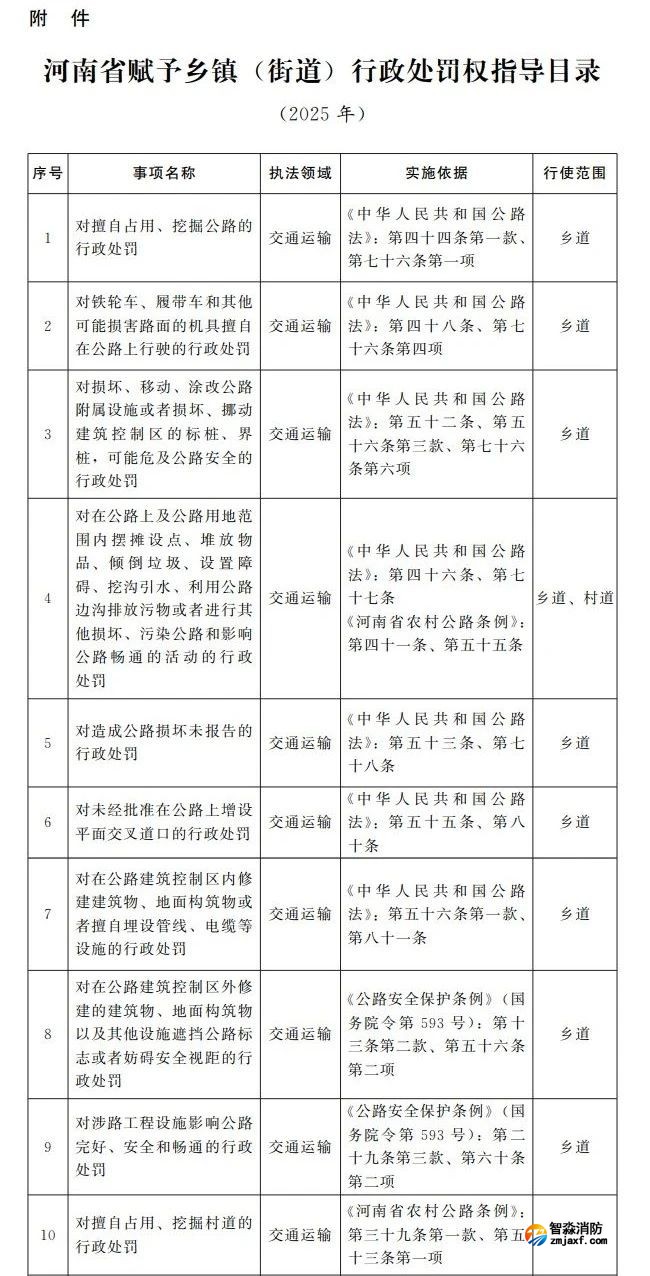附件:河南省赋予乡镇(街道)行政处罚权指导目录(2025年)