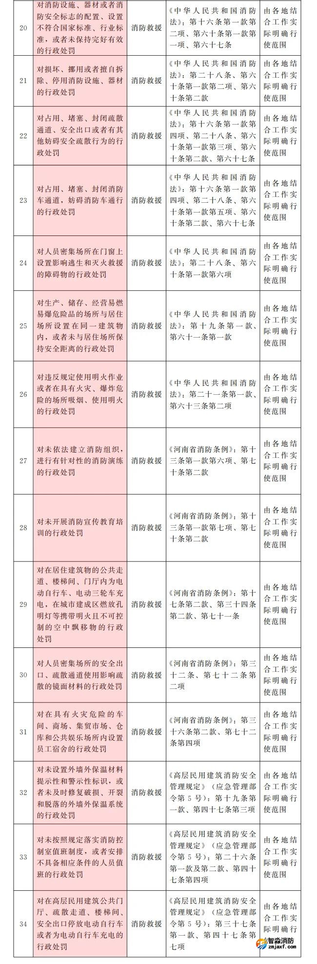 在这目录34项下放的行政执法里面,消防占了大头,共有15项。乡镇(街道)以乡镇政府(街道办事处)名义行使承接的行政处罚权,原行政执法部门在乡镇(街道)区域内不再行使。