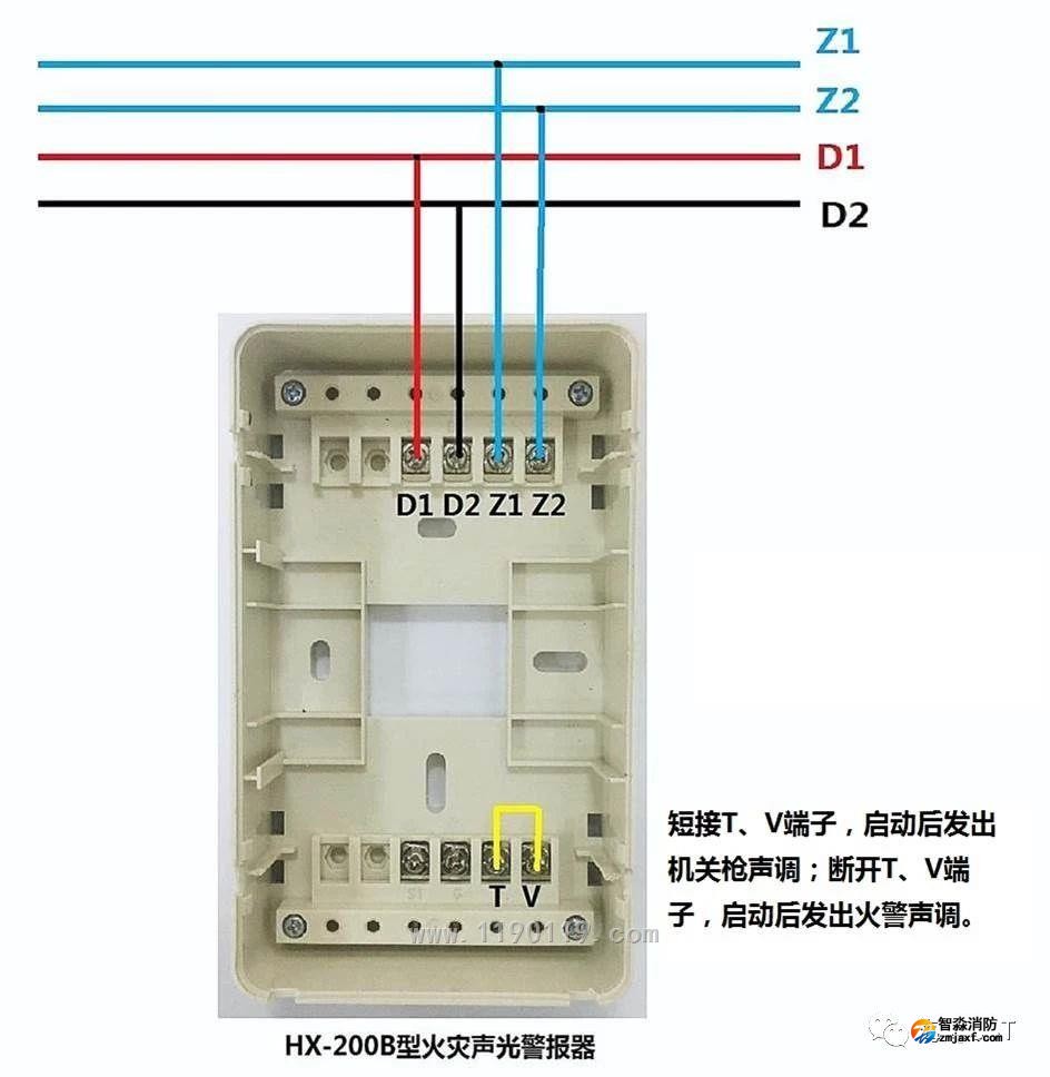 1、8300模块与具有无源常开触点的现场杏彩网页版接线方法: 2、8300模块与具有无源常闭触点的现场杏彩网页版接线方法: 3、8301模块采用无源输出方式,输入端为无源常开触点的接线方法: 4、8301模块采用无源输出方式,输入端为无源常闭触点的接线方法: 5、8301模块采用有源输出方式,输入端为无源常开触点的接线方法: 6、8301模块采用有源输出方式,输入端为无源常闭触点的接线方法: 7、8303模块采用有源输出方式,输入端为无源常开触点的接线方法: 8、8303模块采用有源输出方式,输入端为无源常闭触点的接线方法: 9、8304型消防电话接口接线方法: 10、8305扬声器监视模块(两线制广播模块,可检测扬声器丢失)接线方法: 11、HX-200B声光警报器接线方法: 注意事项: 1、8301、8303模块的输出触点容量是DC24V/2A,适用于12V~48V的直流或交流; 2、部分防火卷帘控制器、电梯控制箱等杏彩网页版因其启动电流微小,容易受到线路干扰,建议8303、8301模块和被控杏彩网页版间加中间继电器; 3、接线图中的电阻均作为检线使用,需配接于杏彩网页版端。