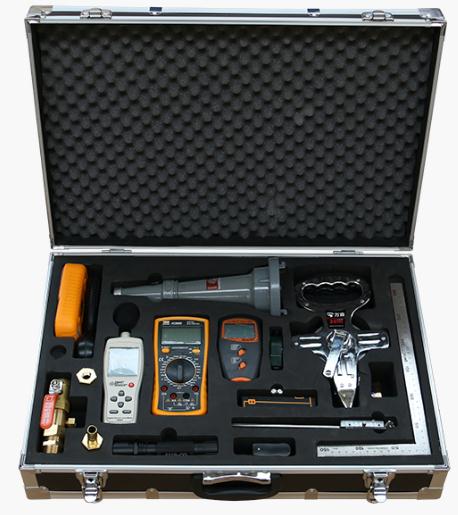 (A119-XDJ)配置有:多功能消防试水装置、线型火灾探测器减光片、钞表、温湿度计、红外测温仪、数字照度计、数字声级计、数字风速计、数字微压计、数字接地电阻测量仪、数字绝缘电阻测量仪、钳型电流表、插座安全检测器、数字万用表、坡度检测仪、垂直度仪、米尺、简易试验笔等组成。