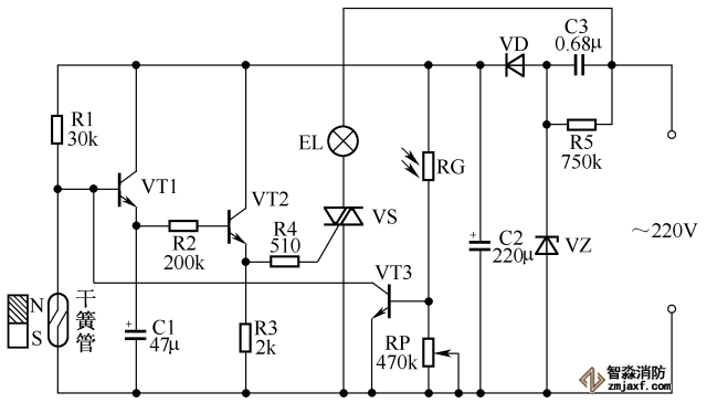 楼房走廊照明灯自动延时关灯电路