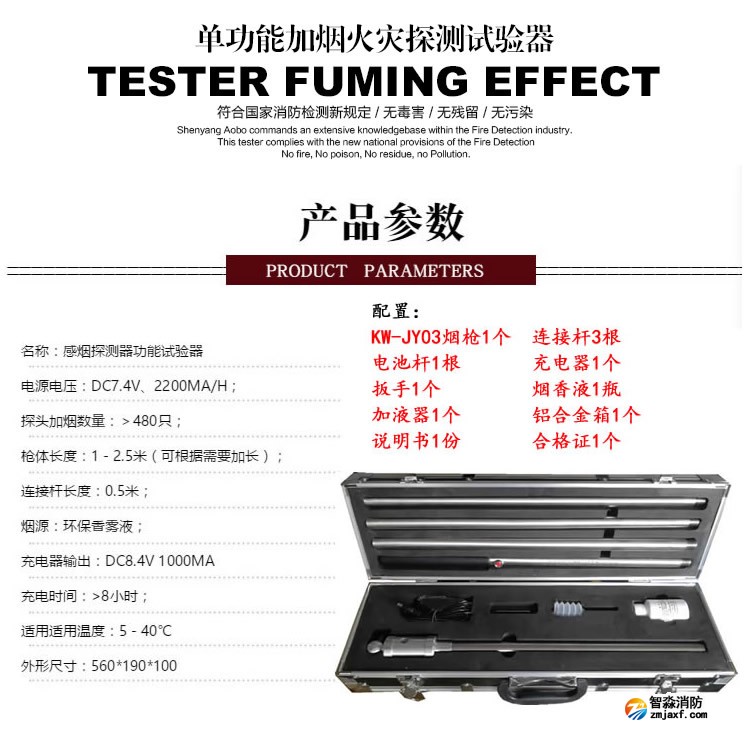 ZM-Y感烟探测器功能试验器是4+2全功能火灾探测器试验器的子产品,利用物理学和化学原理控制和转换技术,采用环保型雾香液通过电子能量转换,将液体释放哦颗粒烟雾,取代并淘汰了传统的棒香发烟方式,发出的烟雾无明火、无烟灰、无烟油,对探头无二次污染。以其结构紧凑,外形精美,携带方便,组装简单,操作灵活,枪体轻便,性价比高等受到广大用户的青睐。全结构为不锈钢设计,铝合金箱包装,可对感烟类(各种型号的离子、光电及复合类烟感探测器)火灾探测器进行维护、检测、调试、验收、灵敏度试验。是消防检测、消防杏彩(中国)及使用火灾报警系统的单位辅助工具。