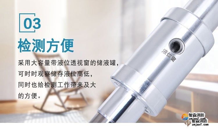 3、采用大容量带液位透视窗的储液罐,可时时观察储存液位高低,同时也给检测工作带来及大的方便。