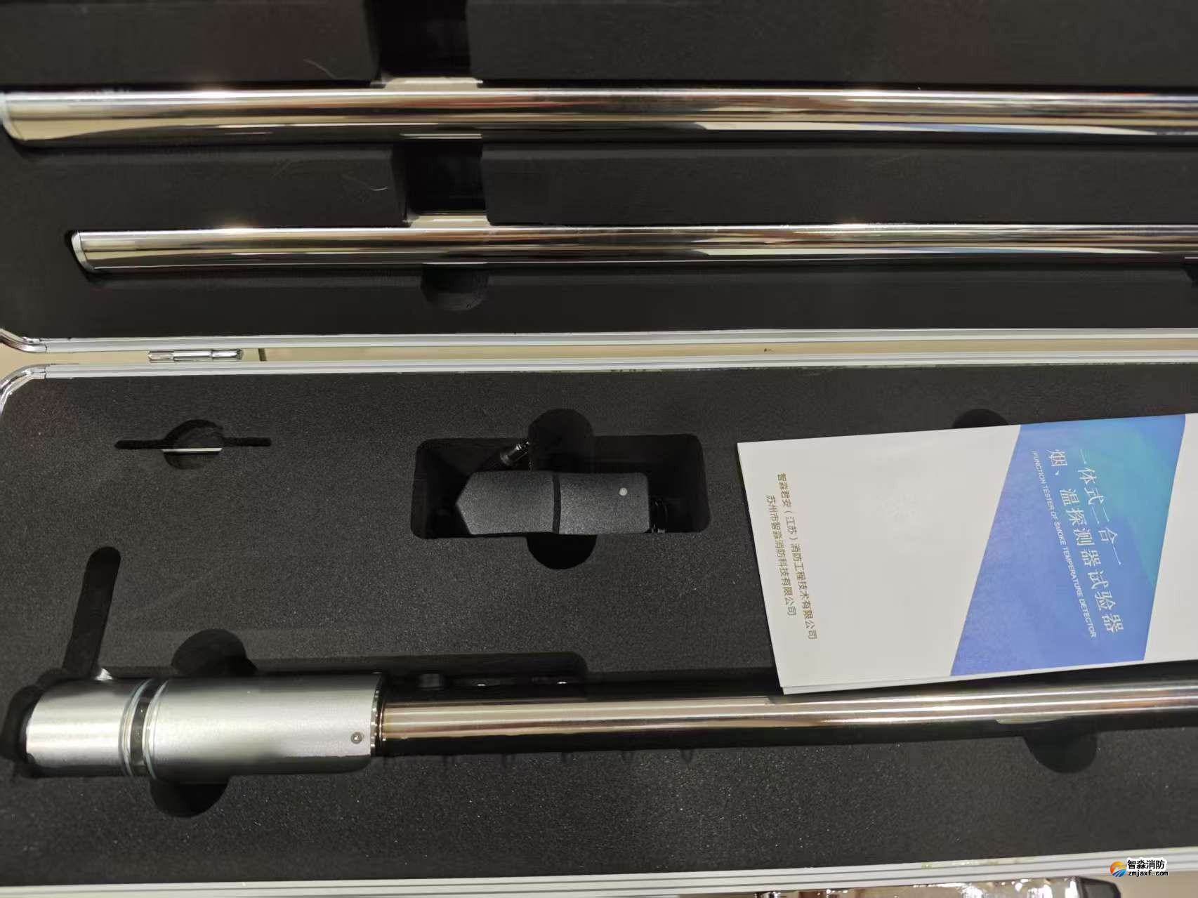 智淼新款一体式二合一烟温试验器及红紫外火焰探测器功能试验器一体式二合一烟温试验器,二合一火灾探测器功能试验器,感烟感温二合一探测器功能试验器是智淼君安消防在优化感烟探测器功能试验器及感温探测器功能试验器的基础上开发设计的新一代烟温试验器,继续保持特有的不锈钢设计,铝合金外包装,携带方便,组装简单、操...