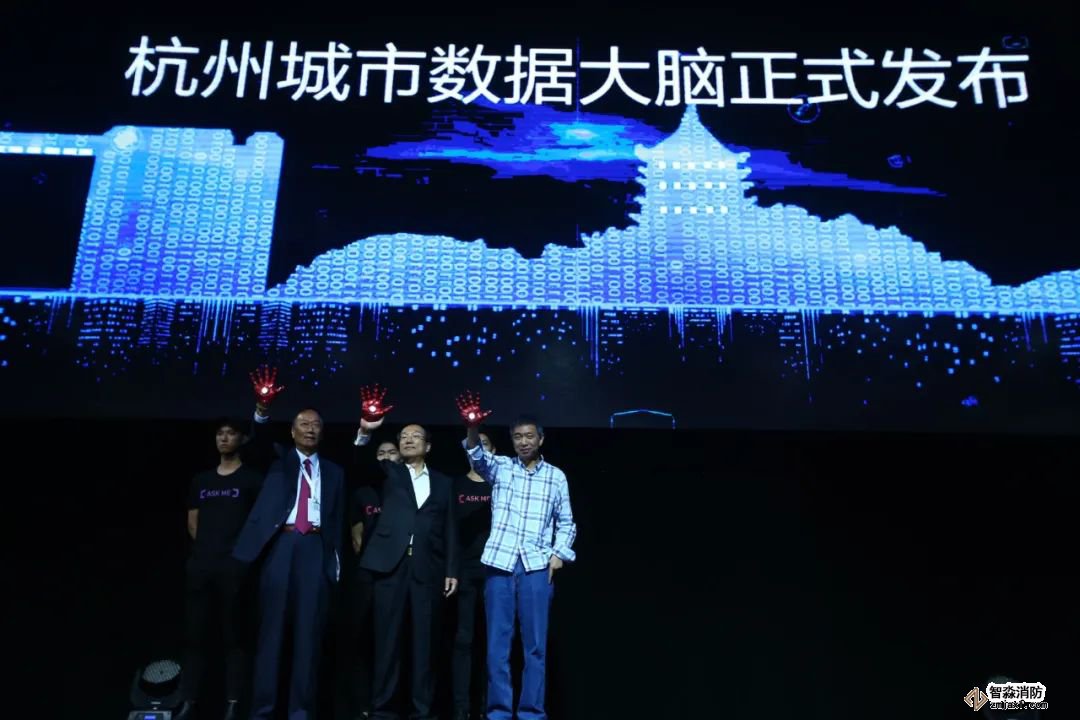 2016年富士康总裁郭台铭、杭州市长张鸿铭、阿里巴巴集团技术委员会主席王坚共同发布城市数据大脑